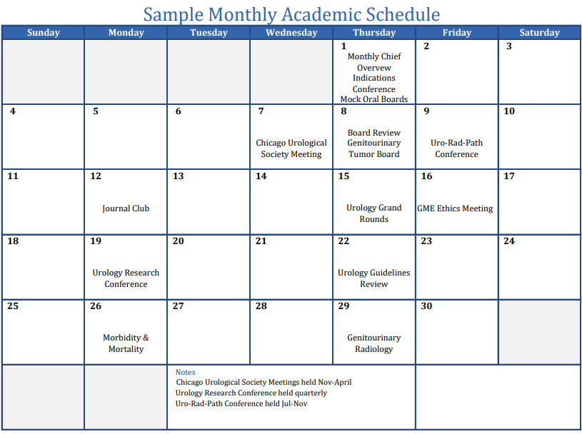 In addition to our resident curriculum, we have developed a separate intern curriculum allowing interns to gain an overview of all topics in urology prior to beginning work as a full time urology resident. This separate curriculum is based on the AUA core curriculum as well as overviews from Weider’s Urology Handbook. The goal is to create a strong urology foundation during intern year that will grow throughout residency.